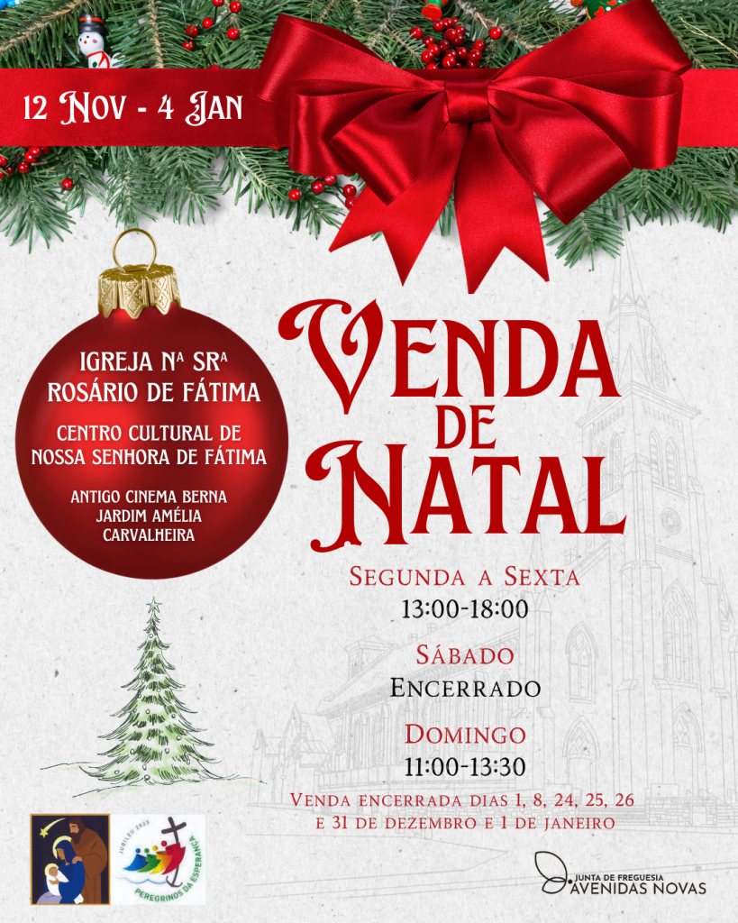 π πππππππ, o Centro Cultural de Nossa Senhora de FΓ‘tima (antigo Cinema Berna, junto ao Jardim AmΓ©lia Carvalheira) recebe uma encantadora Venda de Natal, repleta de tradiΓ§Γ£o, afeto e espΓrito solidΓ‘rio.
