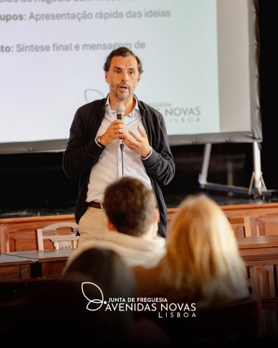 O colaborador Nuno Miguel Henriques representou o Presidente da Junta de Freguesia de Avenidas Novas, Daniel Gonçalves, e dirigiu aos alunos uma intervenção inicial de enquadramento, com uma mensagem inspiradora, incentivando-os à participação ativa, ao pensamento crítico e à valorização das suas ideias.