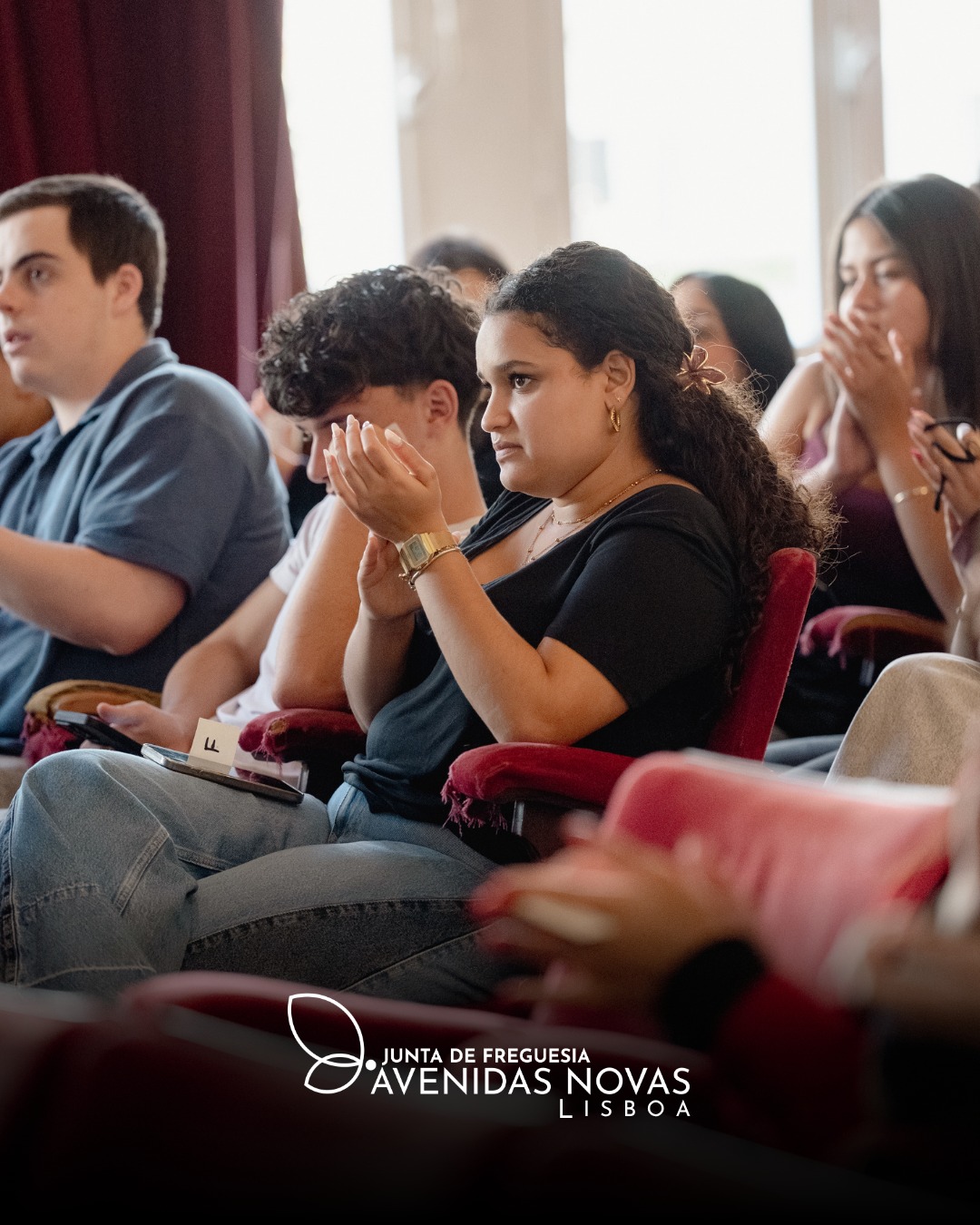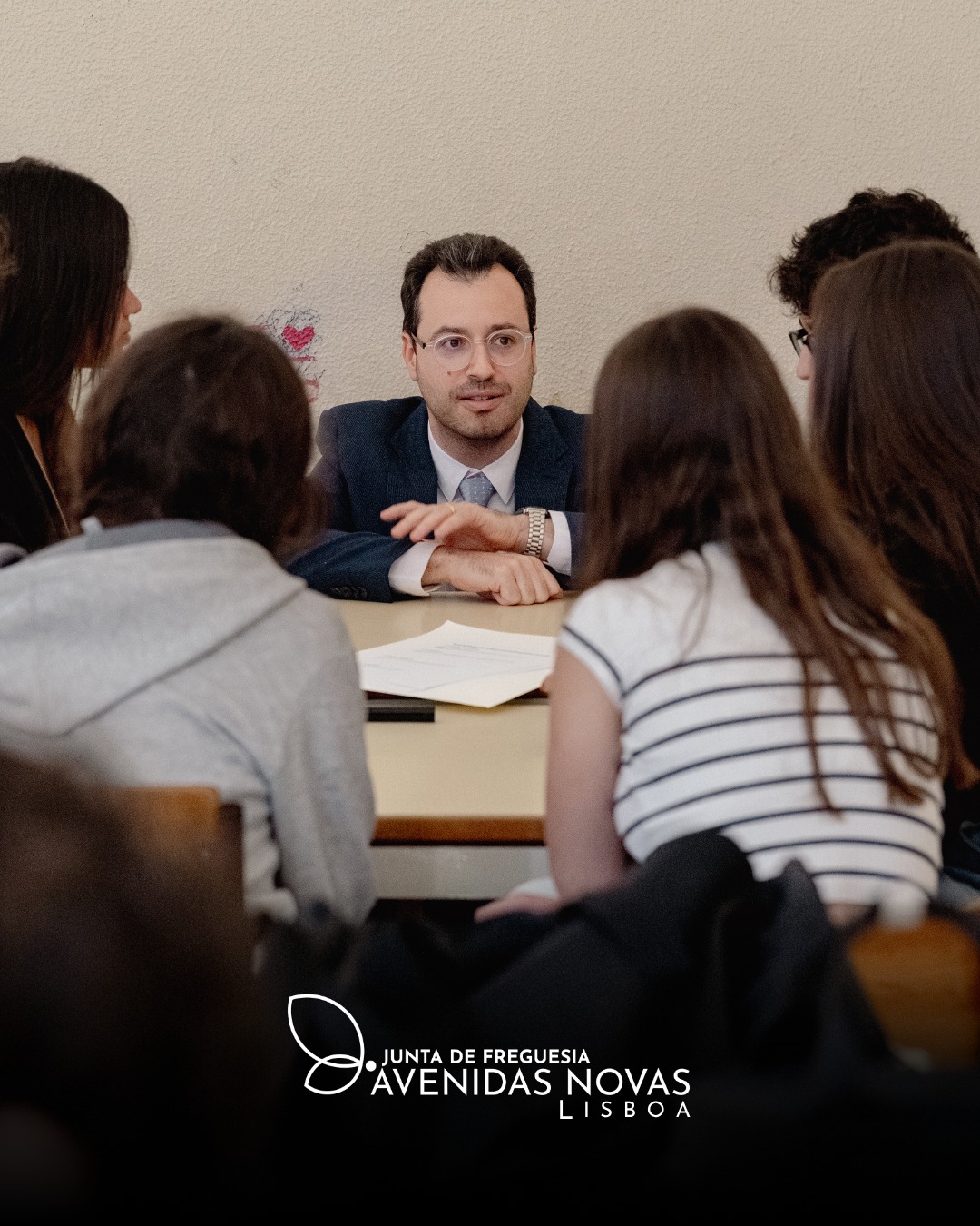 O colaborador Nuno Miguel Henriques representou o Presidente da Junta de Freguesia de Avenidas Novas, Daniel Gonçalves, e dirigiu aos alunos uma intervenção inicial de enquadramento, com uma mensagem inspiradora, incentivando-os à participação ativa, ao pensamento crítico e à valorização das suas ideias.
