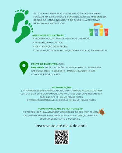 A pedido do ISCAL, a Junta de Freguesia de Avenidas Novas – Lisboa divulga esta iniciativa que convida à participação num percurso ecológico entre o ISCAL e a