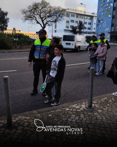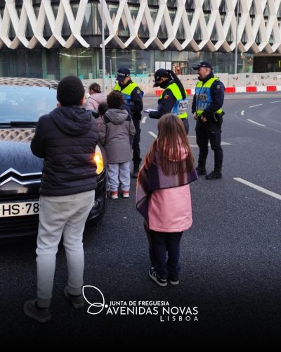 Durante a iniciativa, as crianças acompanharam a operação e entregaram postais comemorativos, elaborados por si no FAN Clube, aos transeuntes que foram mandados parar no local.