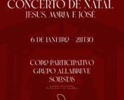 Coro Participativo | Grupo Allabreve | Solistas Data: 6 de janeiro Horário: 21h30 Local: Igreja de Nossa Senhora das Dores Morada: Rua Diogo Macedo, 5 cave – Bairro do Rego