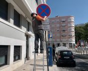 A Brigada de Intervenção Rápida da Junta de Freguesia de Avenidas Novas procedeu esta manhã à reparação e alinhamento com a via de um sinal de trânsito na R. Marquês Sá da Bandeira.