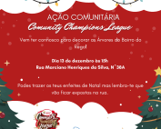 Dia 13, às 15h, venha decorar as árvores do nosso Bairro connosco! Traga as suas decorações de Natal e acompanhe-nos durante a Ação Comunitária, no âmbito da Community Champions League!