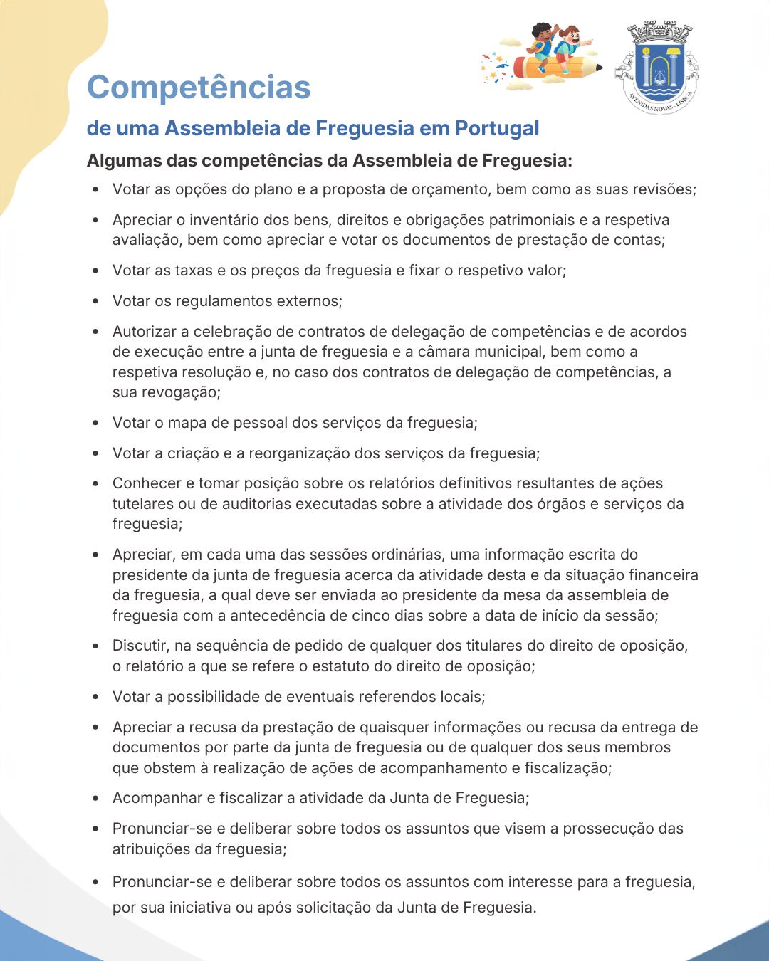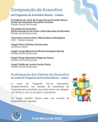 Realizou-se a Sessão Extraordinária da Assembleia de Freguesia de Avenidas Novas – Lisboa, no âmbito do Programa “Assembleia das Crianças”, uma iniciativa que pretende dar voz aos mais jovens e incentivar, desde cedo, o seu interesse pela participação na vida pública.